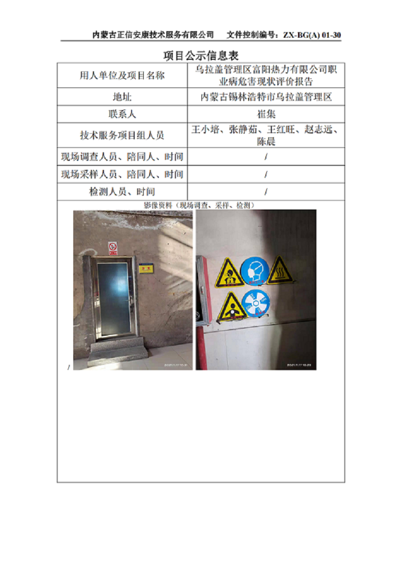 烏拉蓋管理區(qū)富陽熱力有限公司職業(yè)病危害現(xiàn)狀評價
