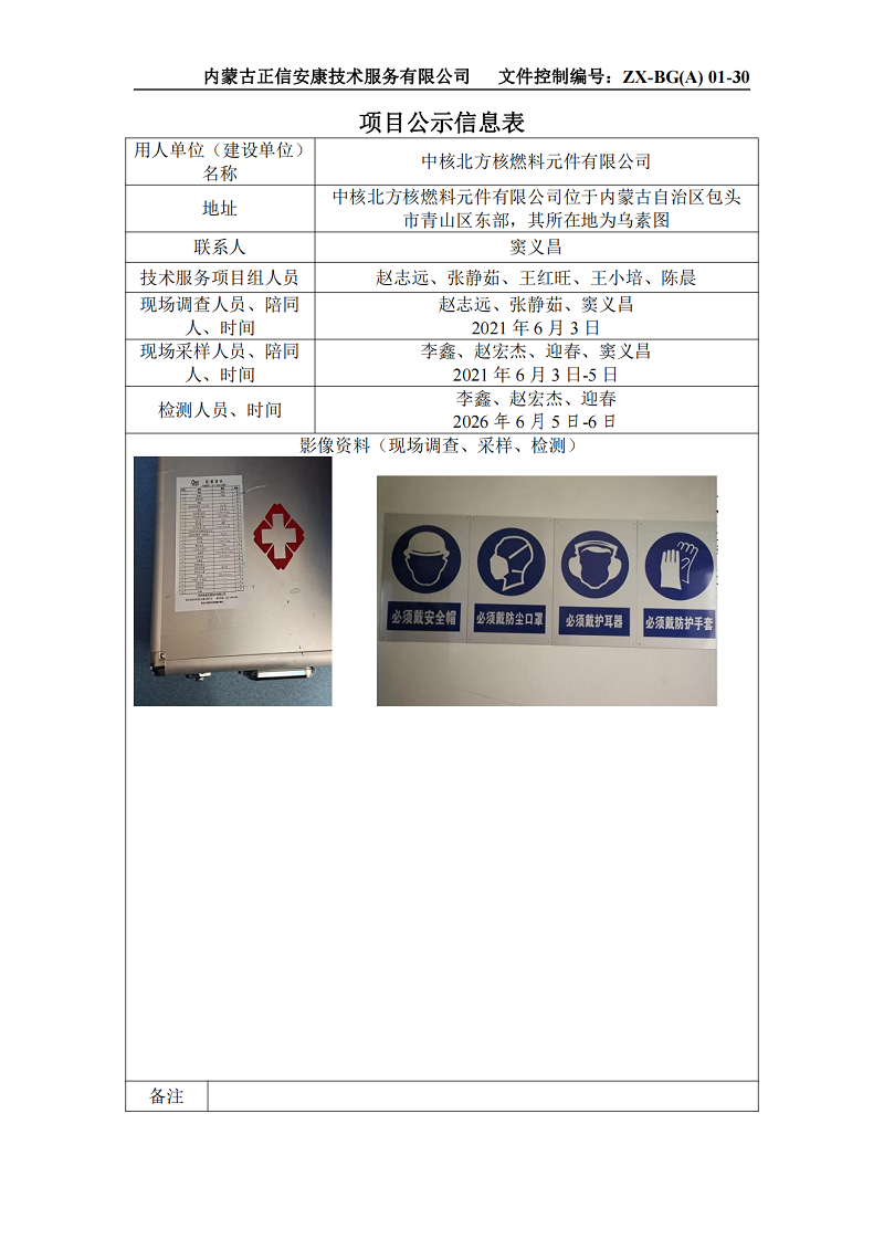 中核北方核燃料元件有限公司鈣質(zhì)品廠安全改造項(xiàng)目職業(yè)病危害控制效果評(píng)價(jià)報(bào)告項(xiàng)目公示信息表