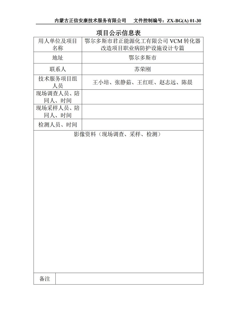 鄂爾多斯市君正能源化工有限公司VCM轉(zhuǎn)化器改造項目職業(yè)病防護(hù)設(shè)施設(shè)計專篇公示信息表