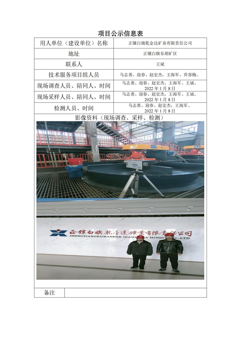 正鑲白旗乾金達礦業(yè)有限責任公司定期檢測項目公示