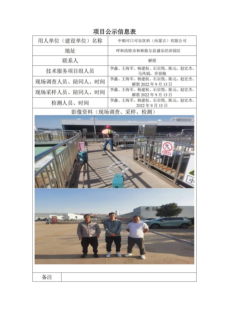 中糧可口可樂飲料(內(nèi)蒙古)有限公司定期檢測項(xiàng)目公示