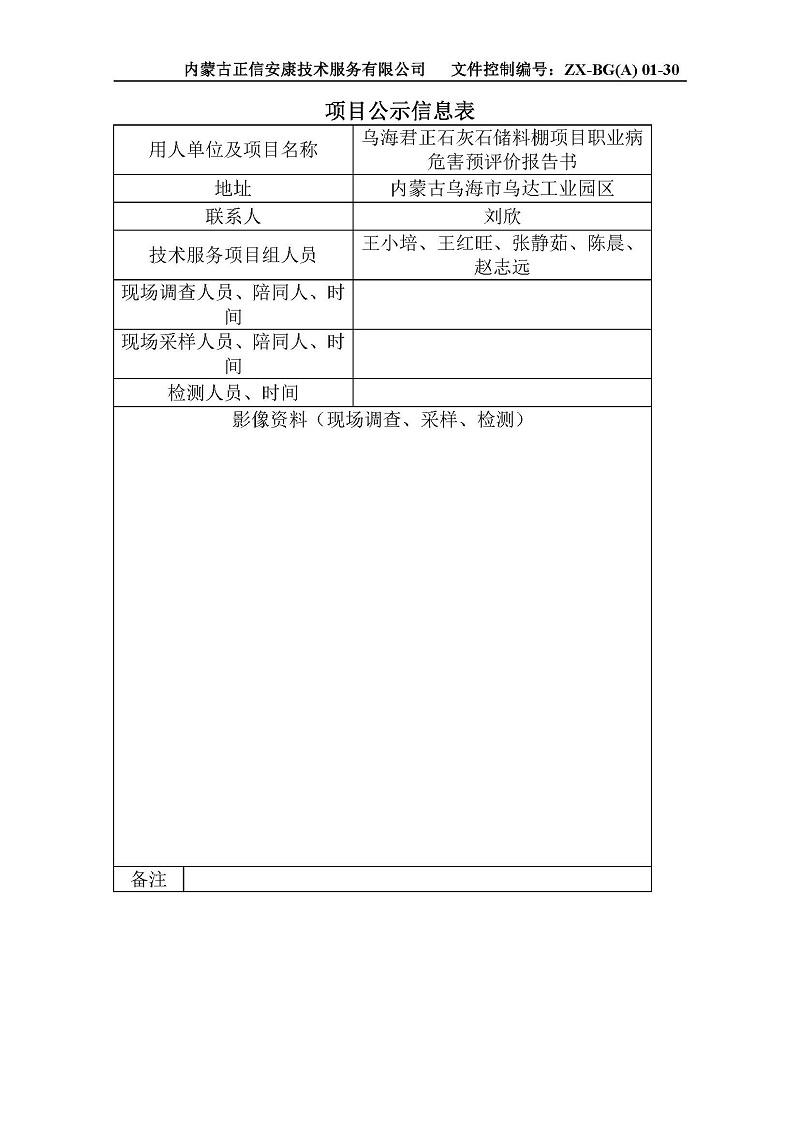 烏海君正石灰石儲料棚項(xiàng)目職業(yè)病危害預(yù)評價