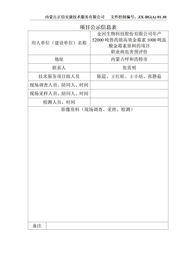 金河年產(chǎn)52000噸金霉素(預(yù)評)項目公示信息表