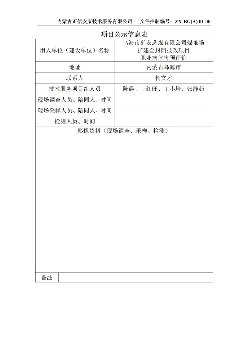 礦友全封閉技改(預評)項目公示信息表