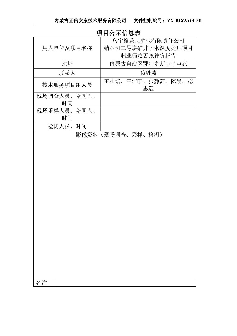 烏審旗蒙大礦業(yè)有限責(zé)任公司納林河二號煤礦井下水深度處理項目職業(yè)病危害預(yù)評價報告
