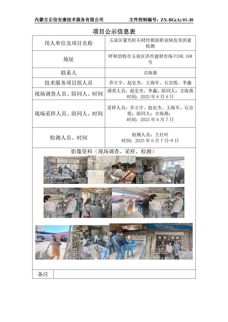 玉泉區(qū)蒙興旺石材經(jīng)銷部職業(yè)病危害因素檢測(cè)