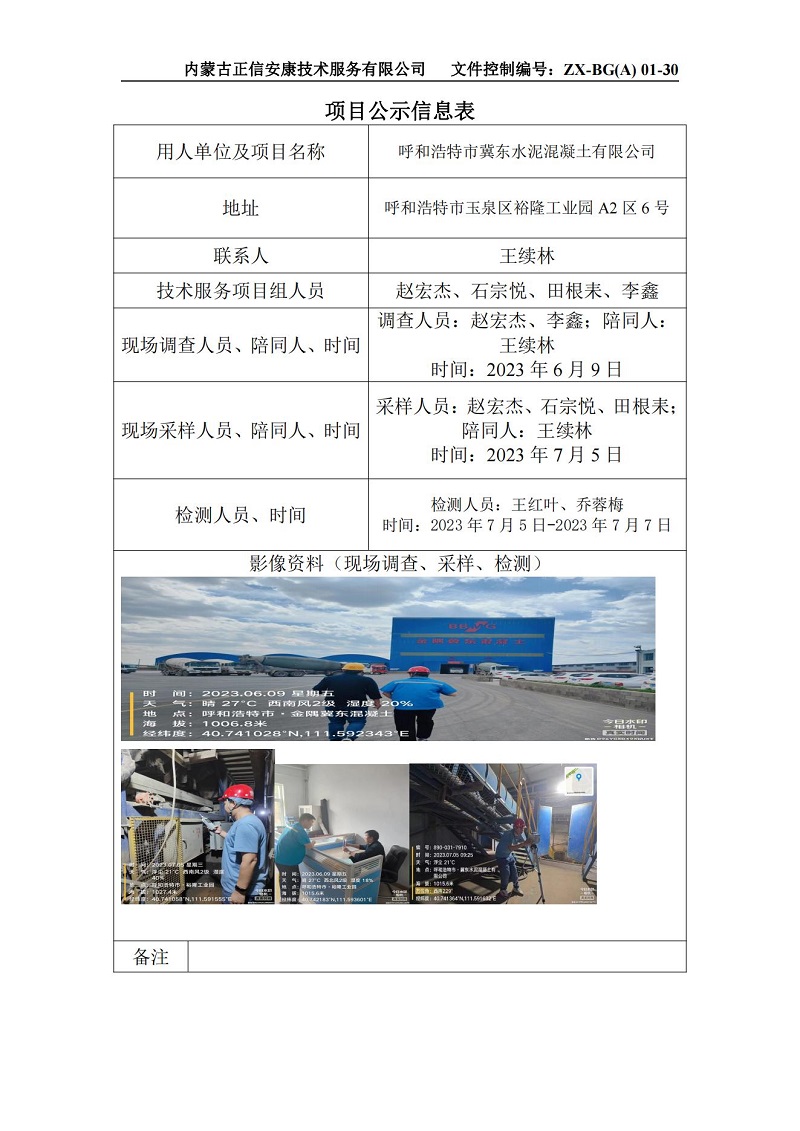 呼和浩特市冀東水泥混凝土有限公司項(xiàng)目公示信息表_