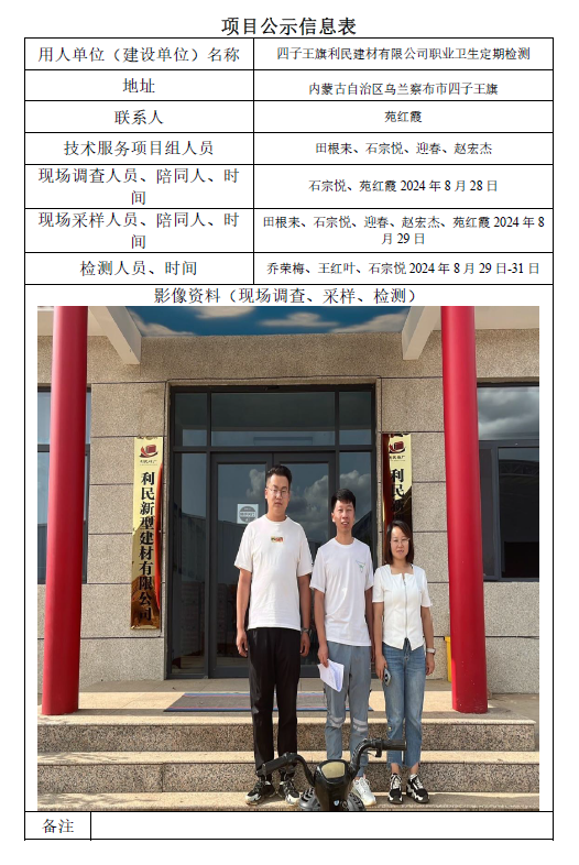 四子王旗利民建材有限公司職業(yè)衛(wèi)生定期檢測(cè)