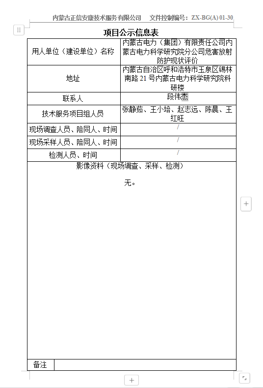 內蒙古電力(集團)有限責任公司內蒙古電力科學研究院分公司 職業(yè)病危害放射防護現(xiàn)狀評價