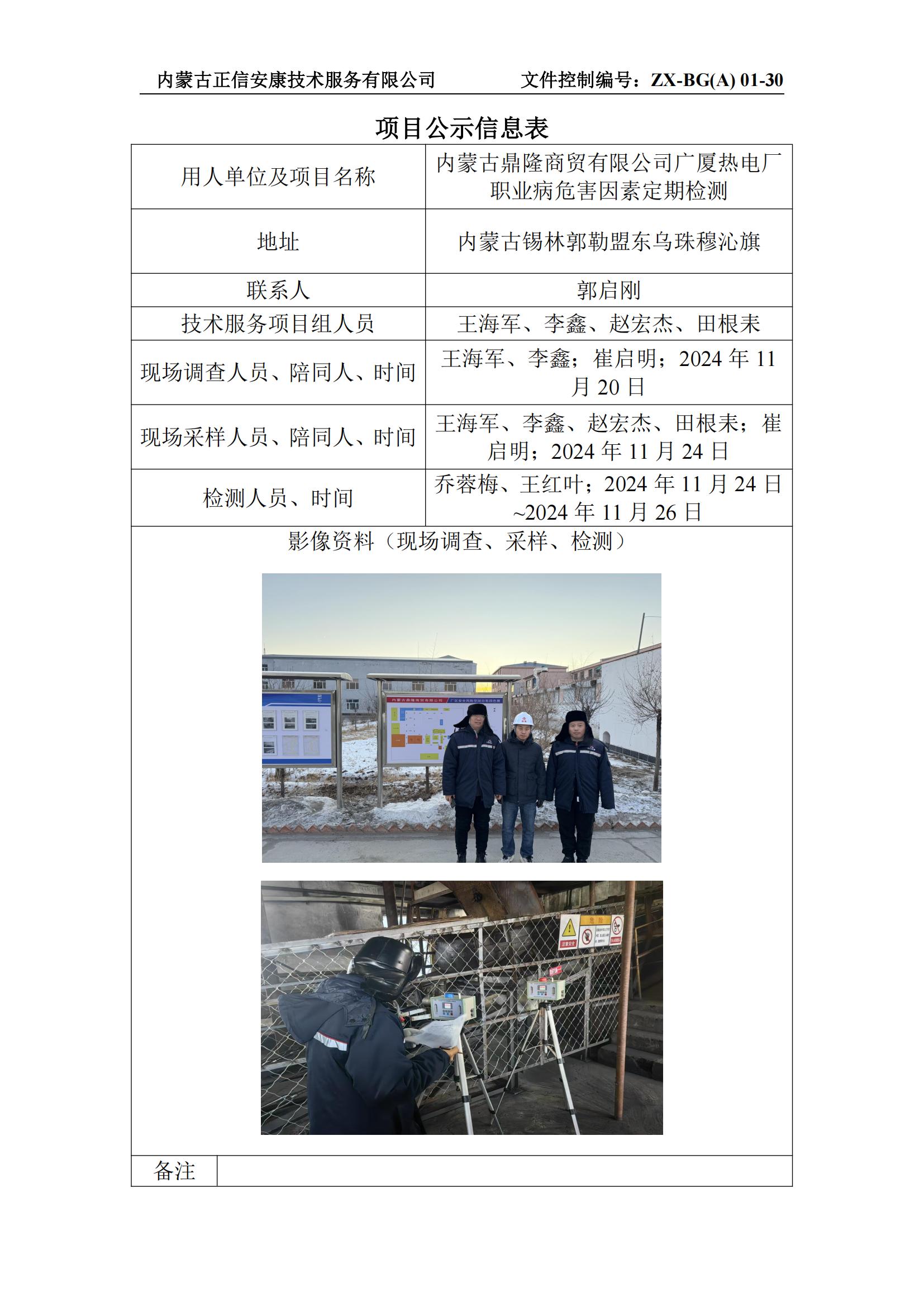 內(nèi)蒙古鼎隆商貿(mào)有限公司廣廈熱電廠職業(yè)病危害因素定期檢測(cè)