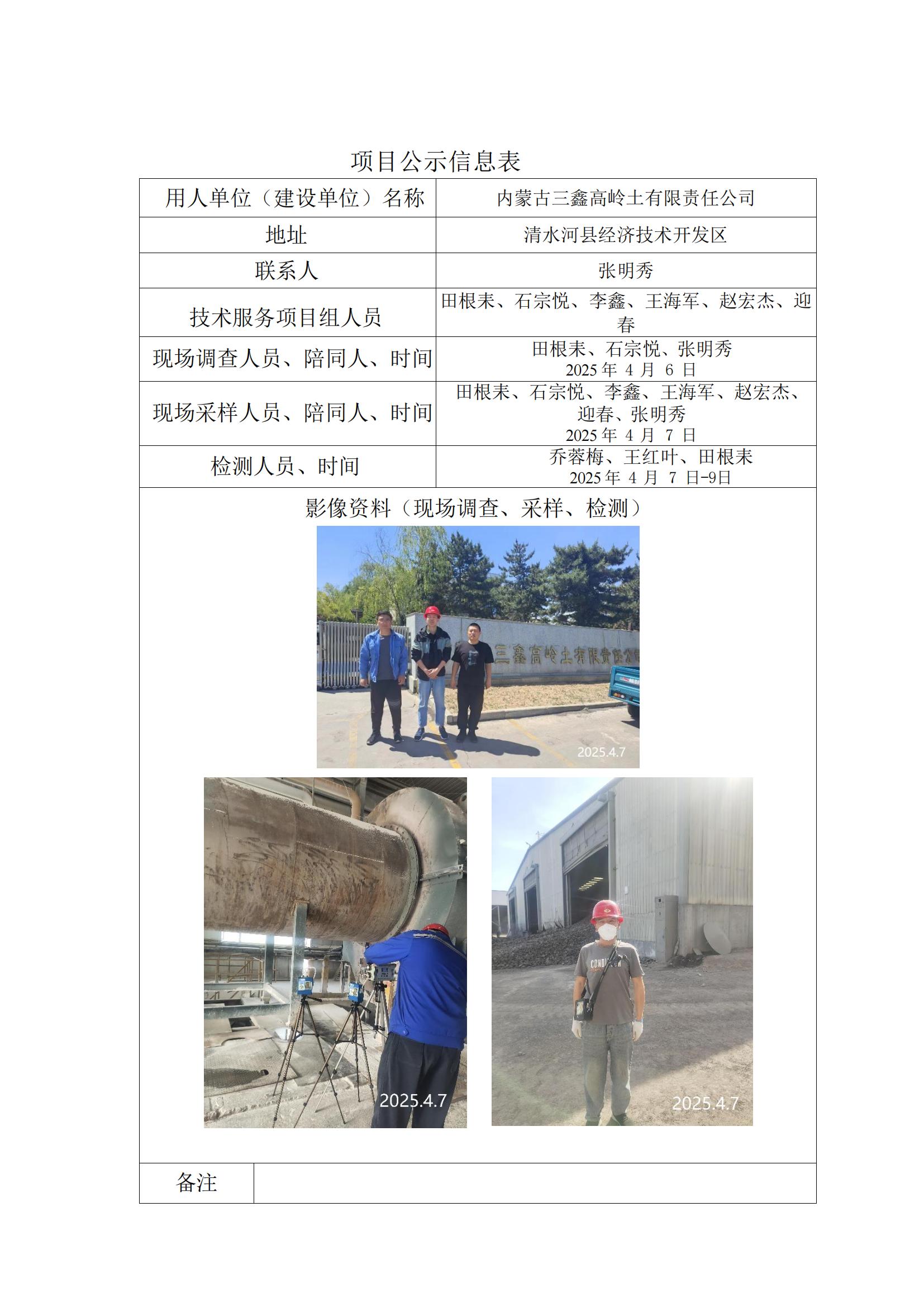 內(nèi)蒙古三鑫高嶺土有限責(zé)任公司職業(yè)病危害因素定期檢測(cè)