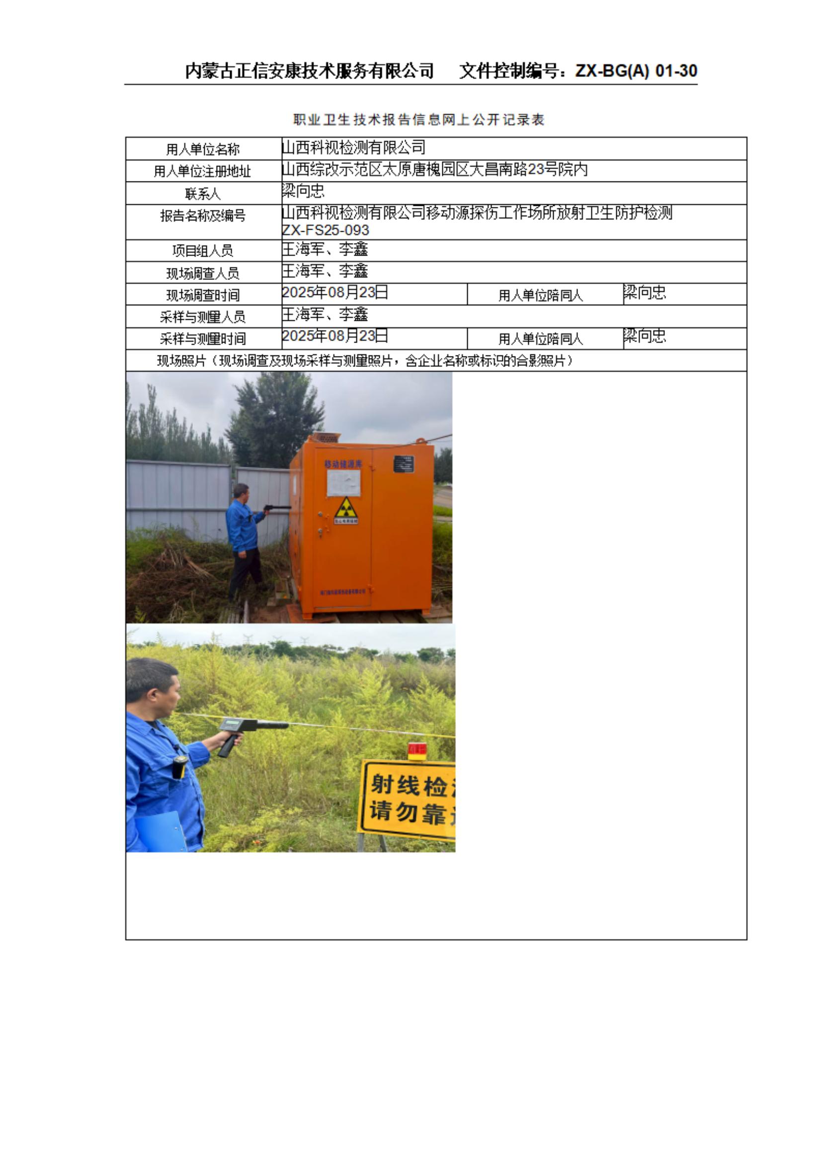 山西科視檢測有限公司移動源探傷工作場所放射衛(wèi)生防護檢測