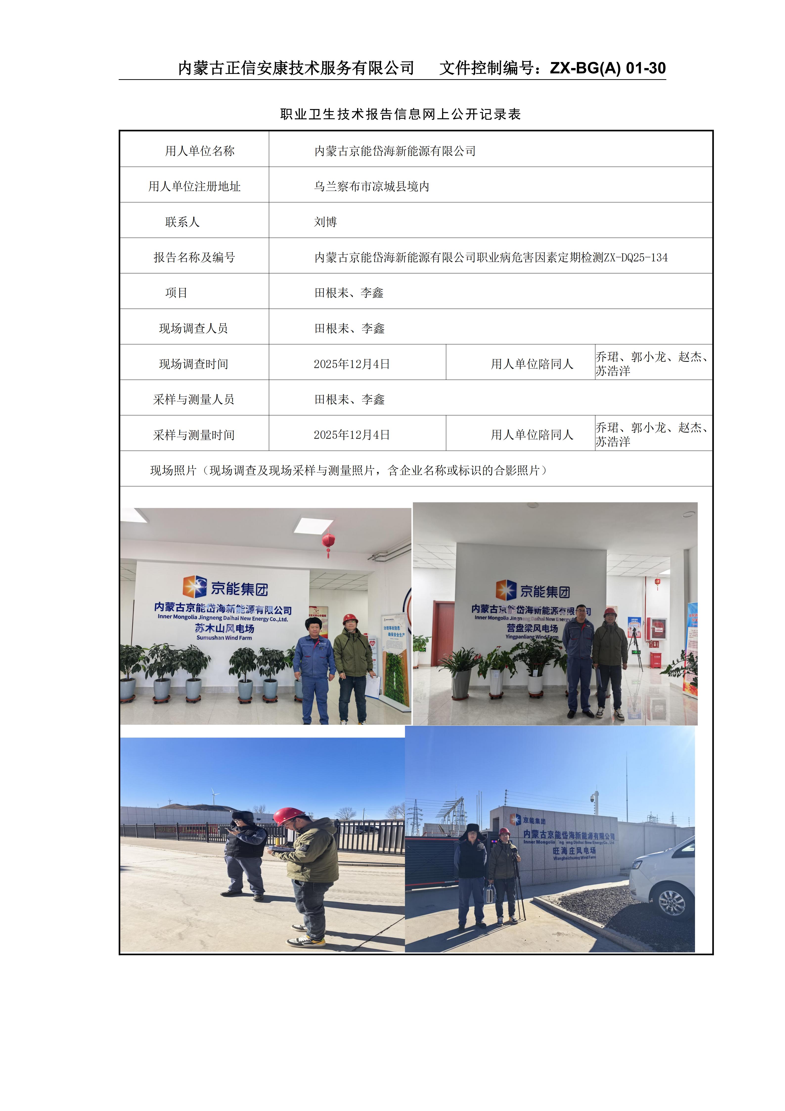 內(nèi)蒙古京能岱海新能源有限公司職業(yè)病危害因素定期檢測