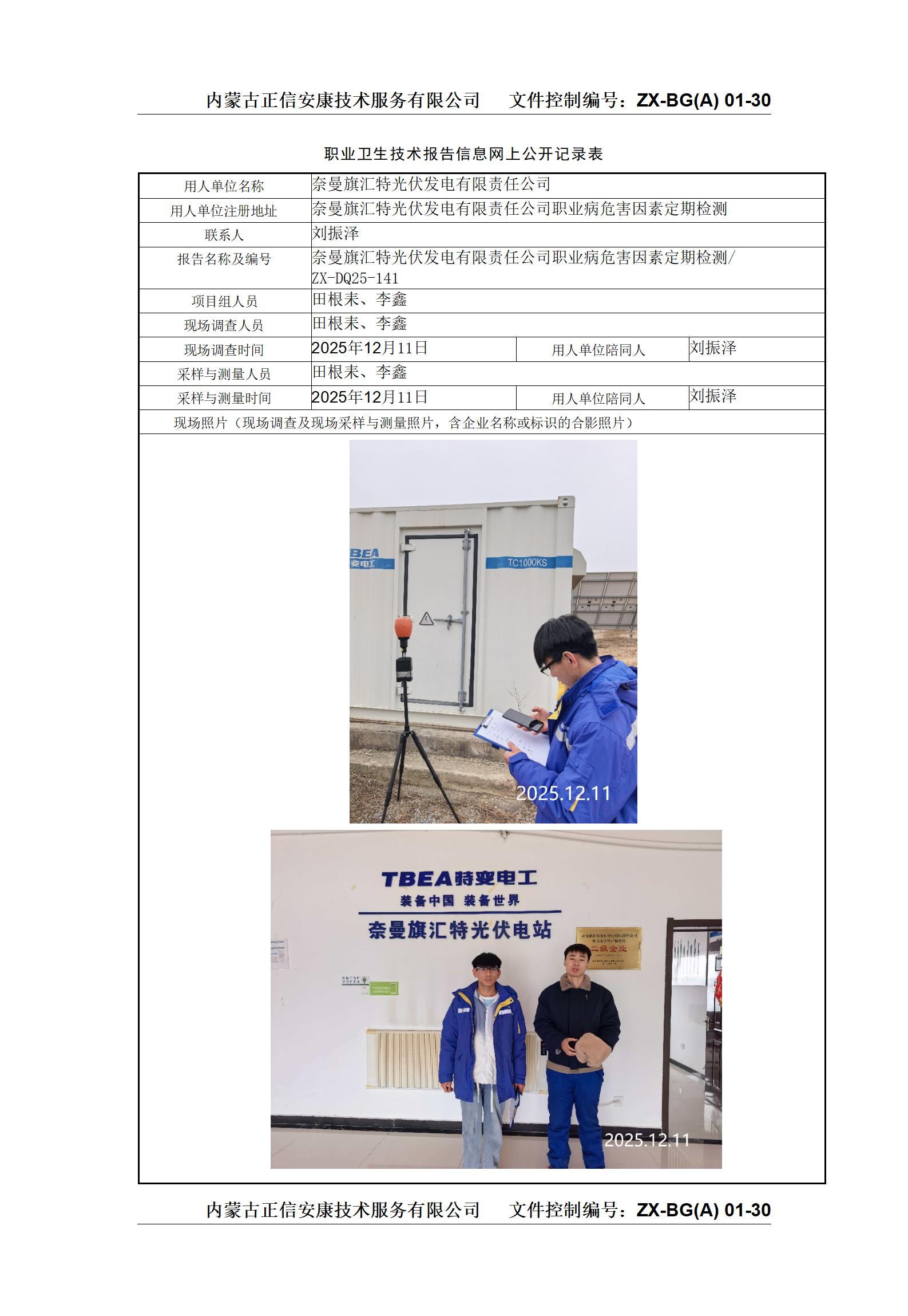 奈曼旗匯特光伏發(fā)電有限責(zé)任公司職業(yè)病危害因素定期檢測(cè)